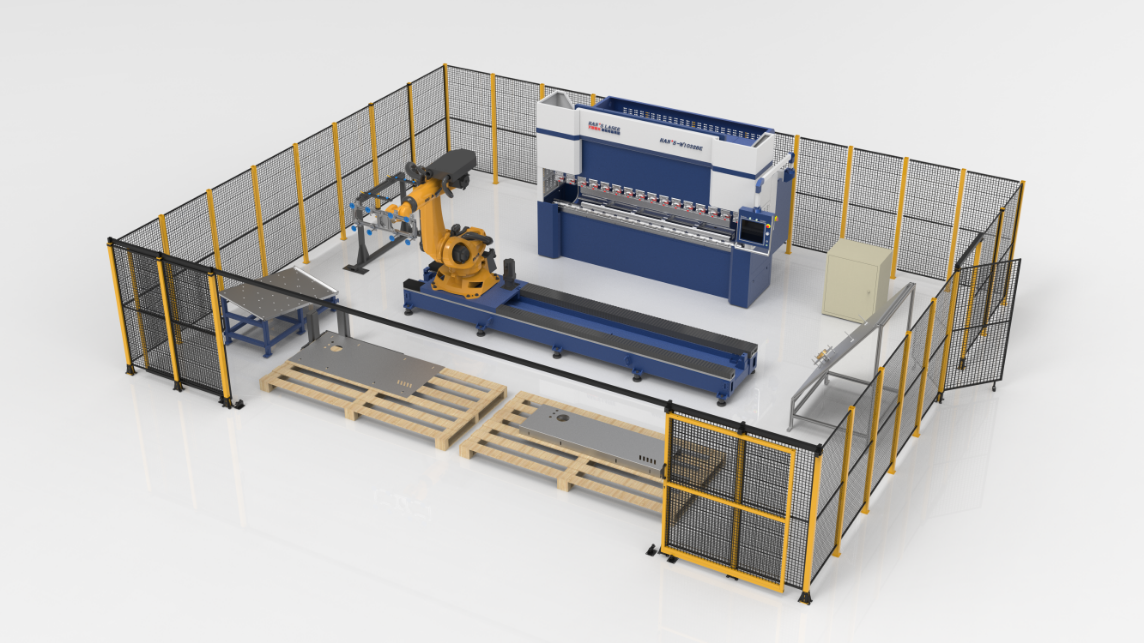 大族激光智能裝備集團機器人自動折彎單元由折彎機與機器人組合而成,具有機器人固定式、機器人行走式、機器人裝卸式三大系列,適用大批量折彎工件智能生產,提效提質、成本效益比更佳;可配備大族系列不同型號折彎機,穩定高效、折彎角度誤差±0.5度,選用庫卡/安川靈活六軸機器人,組合出力;可加工重量高達25kg的各類零件,且支持更大范圍定制化方案;具有靈活的夾持裝置、精確后擋料定位、通用分板裝置、對中臺、直觀控制系統、便捷編程軟件等高品質核心部件,實現折彎更自動化、柔性化。
