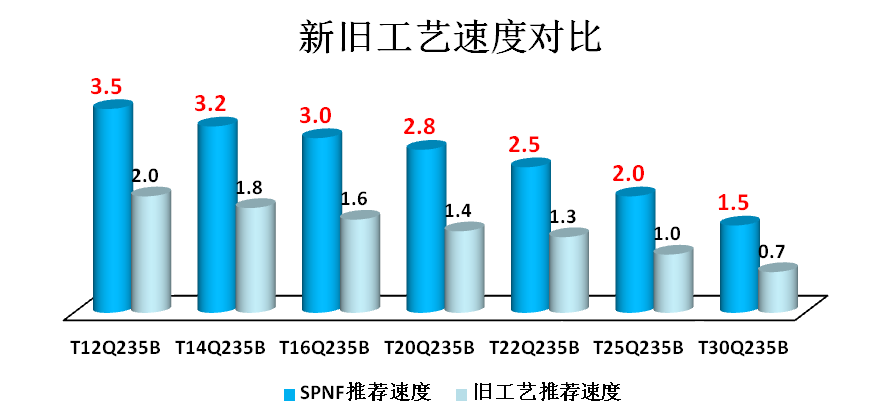 SPNF切割工藝的原理:使用能量密度與材料吸收率更高的負(fù)焦點(diǎn)光束垂直照射于板材,輔以光束同軸的超強(qiáng)氧氣氣流,能夠快速有效的將熔融金屬排出,從而實(shí)現(xiàn)快速切割。該工藝的優(yōu)點(diǎn)為:⑴切割速度快,經(jīng)濟(jì)效益高;⑵板材吸收率高,局部熱量積累小,更利于保護(hù)齒條和床身;⑶耗氣量小(0.8-1bar),成本低,氧氣更潔凈,不易污染管道,易損易耗件的使用壽命更長(zhǎng);⑷使用噴嘴的口徑大,不易發(fā)熱,切割更穩(wěn)定;⑸切割隨動(dòng)高度高,割嘴、陶瓷環(huán)不易損壞。