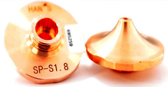 SP系列切割嘴為2018年底功能部件產(chǎn)品中心與CAE中心聯(lián)合研究并推廣的產(chǎn)品,19年初已成功申請(qǐng)使用專利。此款割嘴的優(yōu)點(diǎn)為:氣流從割嘴口噴出后,在下方流場(chǎng)空間內(nèi)能夠形成一股較高流速的射流,速度衰減較為平穩(wěn),射流場(chǎng)中不會(huì)出現(xiàn)激波。對(duì)碳鋼進(jìn)行切割時(shí),氣流能夠垂直作用于整個(gè)切割斷面,從而能夠更有效的將熔融金屬排出,提供更好的切割效果。