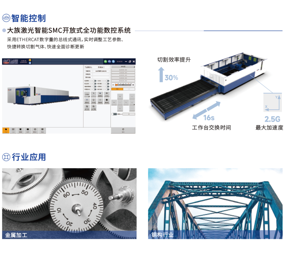 設備高動態性能驅動充分發揮激光器切割速度,一再打破板材厚度極限,將加工效率提升至新境界